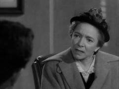 Vemos a Dan Jefferson (Dean Jagger) en el plano. Entra por la puerta de la casa, al lado izquierdo de la pantalla, en penumbra. Cierra. Detrás de él se ve que hay colgadas en la pared dos pinturas. Ha sido cuidadoso a la hora de juntar las hojas de la puerta. Se escucha una música ligera, casi burlesca, que rima con el estado de ebriedad con el que aparece el personaje. Se quita el abrigo y camina tambaleándose hacia la derecha de los espectadores. Mira hacia arriba como en dirección a Lucille (Helen Hayes). Llega a las escaleras e insiste en ese gesto. Coge el abrigo para colgarlo, mientras la cámara amplia el plano donde se ve a su esposa Lucille recostada en un sillón, con una mano en la cabeza. Le ha estado esperando en el salón, en lugar de irse a dormir. Dan deja también su gorra de la legión en el perchero. Lucille se despierta. A Dan se le cae la gorra, confirmando su torpeza incrementada por el consumo de alcohol. Su esposa, en un plano con sombras, fija en él la mirada. Dan va a comenzar a subir la escalera. La escena muda termina con esta intervención de Lucille.